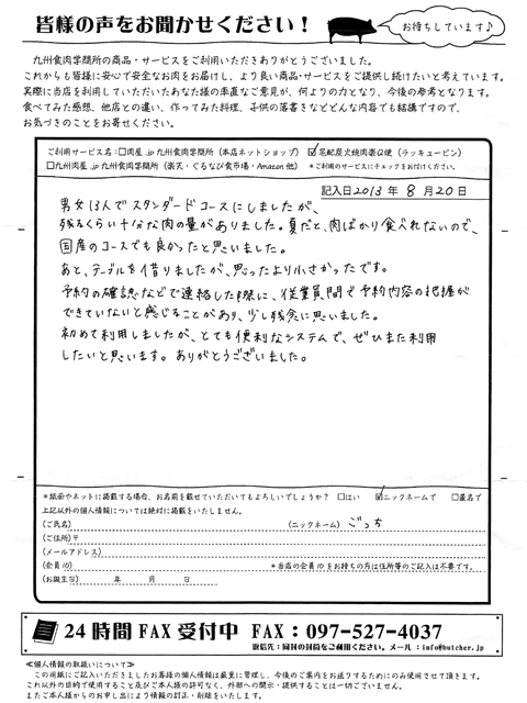 「年配の方が多いのでスタンダコースをベースに肉の量を減らして質を上げてほしい。」